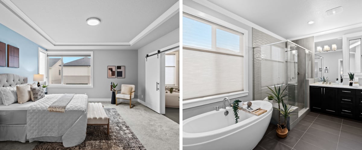 Upstairs, the expansive primary suite feels like a true retreat. Unwind in the soaking tub, refresh in the walk-in shower, and enjoy the ease of a double vanity and spacious walk-in closet complete with custom built-ins. It’s a space designed for rest, restoration, and a sense of escape at the end of the day.