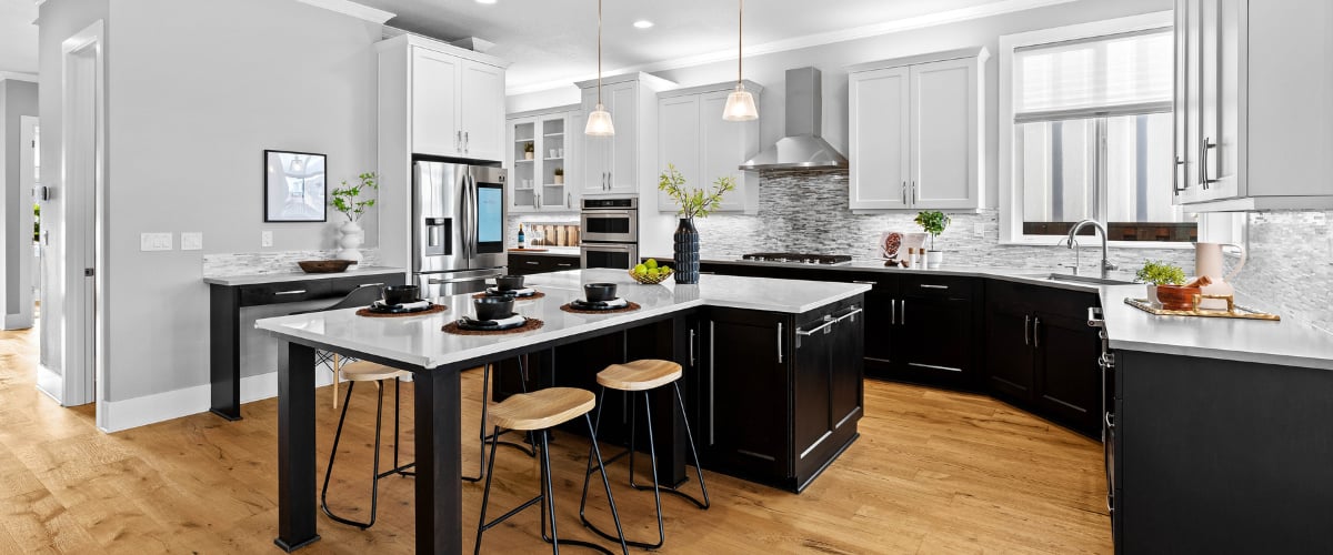Abundant cabinetry and counter space keep everything within reach, while the butler’s pantry adds both storage and style. Stainless steel appliances and a built-in gas range make this kitchen equally suited for weeknight dinners and special occasions alike.